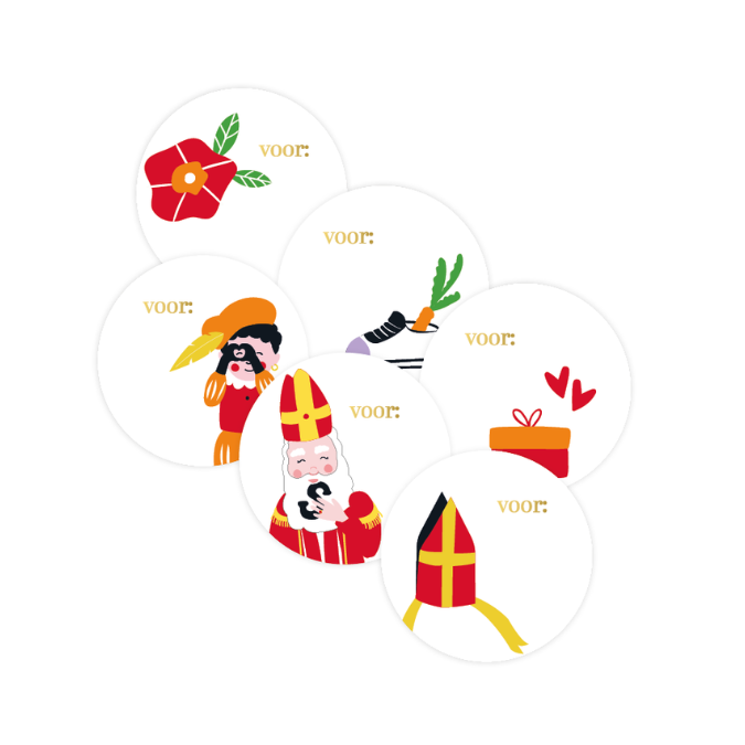 Versier je Sinterklaascadeaus en verrassingen met deze vrolijke naamstickers Sinterklaas! Deze set bevat 6 unieke stickers, perfect om je cadeaus, enveloppen en verpakkingen een feestelijke te personaliseren en de naam van de ontvanger op te schrijven. De verschillende ontwerpen brengen meteen de gezellige sfeer van Sinterklaasavond in huis en maken elk cadeau extra bijzonder.