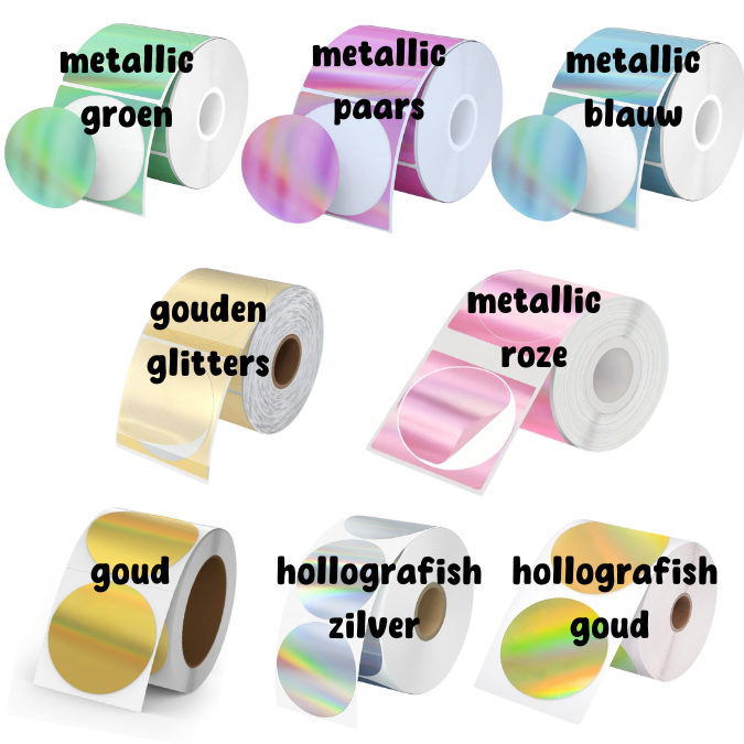 Roze, Rood, Paars, Mint, Lila, Wit, Geel, Groen, Blauw, Camel, Hollografisch zilver, Goud, Glitter goud, Unicorn, Regenboog bloem, Metallic groen, Metallic blauw, Roze hart